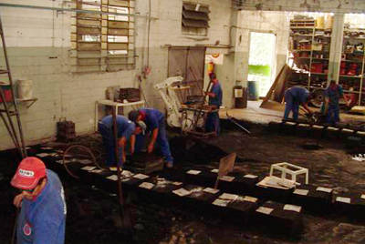 Fundição de peças em coquilhadeiras hidráulicas e em processo de bancada manual.